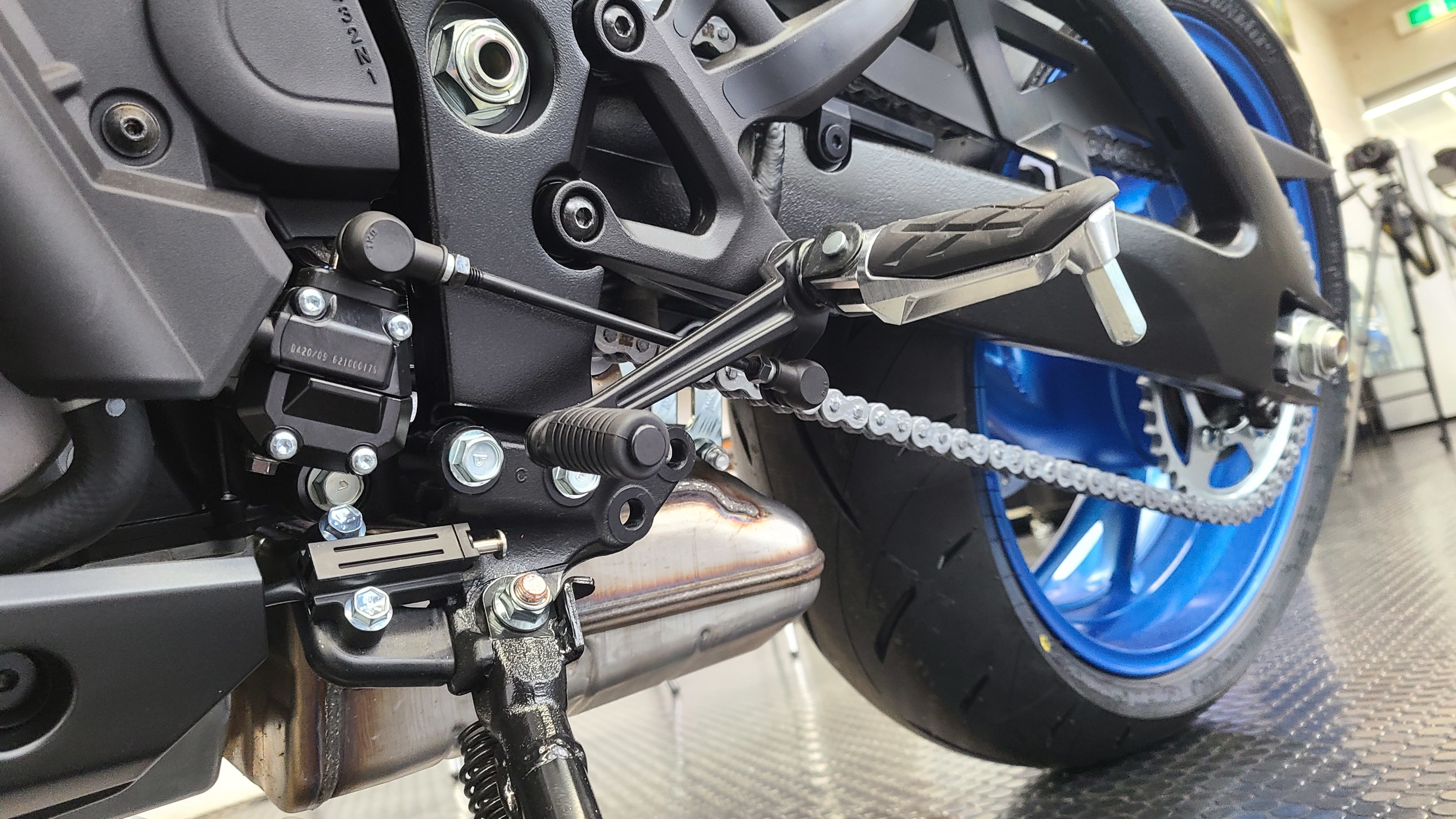 ↑・クイックシフターも搭載しています。シャフトの根元にセンサーがあるタイプなので「ふにゃっと感」が少なく、操作性にすぐれています